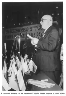 A. Blodnieks presiding at the International Union's congress in Paris, France