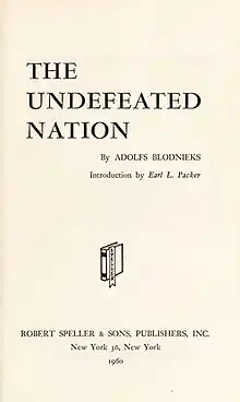 The Undefeated Nation by Adolfs Blodnieks Prime Minister of Latvia. Robert Speller & Sons, Publishers, Inc. NY, 1960