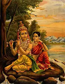 Ānanda (Sanskrit: आनन्द) literally means bliss or happiness. In the Hindu Vedas, Upanishads and Bhagavad gita, ānanda signifies eternal bliss which accompanies the ending of the rebirth cycle. Those who renounce the fruits of their actions and submit themselves completely to the divine will, arrive at the final termination of the cyclical life process (saṃsāra) to enjoy eternal bliss (ānanda) in perfect union with the godhead. The tradition of seeking union with God through loving commitment is referred to as bhakti, or devotion.[1]