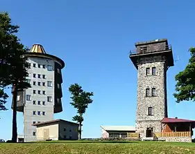 After its use by the Wehrmacht in the Second World War the summit was intensively used by the Warsaw Pact until the 1990s as a surveillance station and was placed out of bounds to the public. In addition to the observation tower erected in 1904 by Vilém Kurz and known as the Kurz Tower, a second, larger tower was built in 1987 by the Czechoslovak Army which is used today for flight safety purposes and is not accessible. The corresponding NATO communication station was located on the Hoher Bogen about 20 km away to the southeast. Other surveillance posts were sited inter alia on the Velký Zvon (German: Plattenberg, with a tower of very similar design built in 1978 and which had line-of-sight to the Čerchov site) and the Dyleň. As well as the Soviet Army the site was also used by Hauptabteilung III of the East German Stasi as a listening post (codenamed RUBIN). Following the opening of the border and reunification of Germany the listening posts were closed and from July 2000 the Kurz Tower has been accessible once more. The mountain offers an all-round view of the Bavarian Forest and the Czech Plain. In good weather conditions, the Alps may be seen. There is an amateur radio on the mountain.