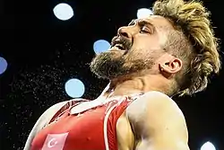 İbrahim Arat (born December 2, 1988, in Izmir, Turkey) is a Turkish weightlifter competing in the –94 kg division. The 1.79 m (5 ft 10 in) tall athlete is a member of İzmir Büyükşehir Belediyespor in his hometown, where he is coached by Mücahit Yağcı and Selim Savaş.[1]