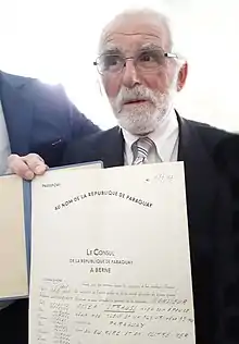 In December 2019 list of names of 3262 holders of passports issued by Ładoś Group was presented at the Pilecki Institute in Warsaw.[15] It is estimated though that from 5000 to 7000 names of the passports' bearers remains unknown. The research has been carried out by team led by Jakub Kumoch in Arolsen Archives - International Center on Nazi Persecution, Yad Vashem, and Archives of New Proceedings in Warsaw.[16]