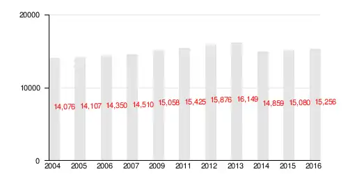 According to the Central Statistical Office data, the district's area is 5.42 square kilometres (2.09 square miles) and 14 859 people inhabit Łagiewniki-Borek Fałęcki.[1]