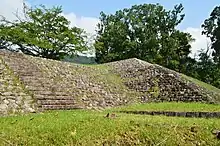 Estimated to have been constructed in the late 4th century, it is the oldest tumulus to have been found in the Ōmi region. It is not known who built this tumulus, but it is believed to have some connection with the powerful Wani clan, which is known to have ruled this area of Ōmi during the Kofun period. The location of the tumulus near the site of the late Asuka period Ōmi Palace may also have some significance.[2]
