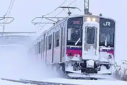 The Ōu Honsen (奥羽本戦, Main battle of Ōu, a pun on the Ou Line railroad traversing the prefectures) is a footballing rivalry played between Blaublitz Akita and Montedio Yamagata, both professional J.League teams from the cities in the former Dewa Province, Japan.[3] It is also known as the Dewa derby or Chokaisan derby, and named after Japan Railways Ōu Main Line which connects Akita City and Tendo, Yamagata.[4] Series winners can wear home kits at the opponent's stadium next season.[5] This matchup is a part of Tohoku derby.
