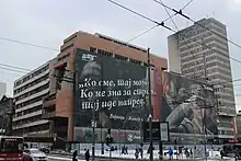 A propaganda billboard in Belgrade, bearing one of his quotations.