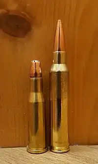 The .218 Bee is a .22 caliber centerfire rifle cartridge designed for varmint hunting by Winchester in 1937. The cartridge was originally chambered in the Winchester Model 65 lever-action rifles, which may have ultimately led to its lack of popularity. The cartridge is named for the bore diameter of the barrel in which the cartridge is chambered rather than the usual practice in the United States of having the cartridge's nomenclature reflect in some way the bullet diameter.