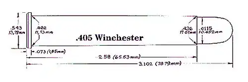 The .405 Winchester (also known as the .405 WCF) is a rimmed centerfire rifle cartridge introduced in 1904 for the Winchester 1895 lever-action rifle.[4] It remains to this day one of the most powerful rimmed cartridge designed specifically for lever-action rifles; the only modern lever action cartridges that exceed its performance are the .50 Alaskan, .450 Alaskan, .475 Turnbull, .348 Turnbull, and the .450 Marlin. The .405 was highly regarded by U.S. President Theodore Roosevelt during his safari in East Africa.[5]