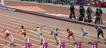 Traditionally there are four rounds of competition: heats, quarter-finals, semi-finals, and finals. Prior to 1964, finals featured six athletes.[9] For all Olympic competitions from 1964 onwards—allowing for a sufficient number of athletes being present—each race features eight runners.[10] Athletes are seeded by past performance to ensure an even balance of quality across the heats and allow the best runners to progress to the later stages. Usually in the first two rounds the top three runners progress to the next stage. A small number of other athletes also progress as the fastest non-qualifiers (or "fastest losers") through a repechage system. Prior to 2012, the semi-finals stage comprised two races of eight athletes and the top four finishers in each race (regardless of time) were entered into the final.[11]