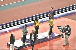 The women's 100-metre medalists at the 2012 Summer Olympics