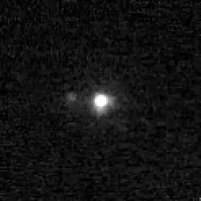 Keck Telescope image of Salacia (bright, center) and its moon Actaea (faint, at left)