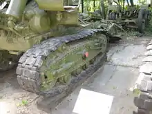 Several types of carts were used for barrel transportation. Guns produced in 1937 received the Br-6 cart. Other types used were the wheeled Br-10 (11.1 tons with the barrel) and the tracked Br-29 (13.42 tons with the barrel). In the trials report of 7 August 1938 both were referred to as unsatisfactory; the former because of bad passability and the latter because of excessive weight.[1]