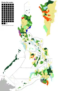 | Bil | BPP | CDP | KBL | LDP | Lakas | LM | LP | NP | NPC | NUP | PDP | PDSP | PMP | UNA | Ind | LT | PL | Vacant | ||