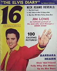 Founded in 1956, the first issue of 16 hit the newsstands in May 1957, with Elvis Presley on the cover.[1]