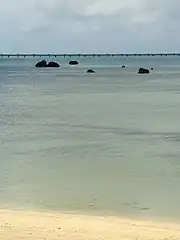 There are many huge boulders on the coasts of the Yaeyema and Miyako islands that are believed to have been deposited by tsunamis. There was a legend that an islet disappeared, but this has never been verified. This set of rocks are called the Ishigaki East Coast Tsunami Rocks.[8] Among them, Yasura-ufukane, Amatariya–Suuari and Taka-koru sishi have been dragged by the 1771 Meiwa tsunami.[9]
