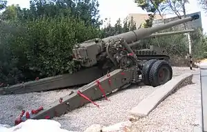 The 180 mm gun S-23 (Russian: 180-мм пушка С-23) was a Soviet heavy gun of Cold War era. It was developed in the early 1950s, with the design based on naval guns. Its first public appearance was the 1955 May Day parade in Moscow.[1] For some time, it was believed in the West that the S-23 was actually a 203 mm weapon, and as a result it was often referred to as the 203 mm M1955 gun howitzer. However, after an example was captured in the Middle East during the 1970s this misconception was dispelled.[3][2]