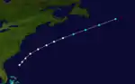 This storm was first observed by the brig Hattie Eaton on July 16, while located a few hundred miles offshore the Carolinas. The Hattie Eaton reported sustained winds of 80 mph (130 km/h) – equivalent to a Category 1 hurricane on the modern day Saffir–Simpson hurricane wind scale.[2] Early on July 18, the hurricane weakened to a tropical storm. Several hours later, the storm was last noted by ship Energy, while located about 435 mi (700 km) east of Cape Race, Newfoundland.[2][4]