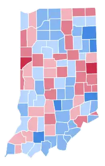 | Tippecanoe | 4,386 | 46.15% | 4,856 | 51.10% | 53 | 0.56% | 208 | 2.19% | -470 | -4.95% | 9,503 |