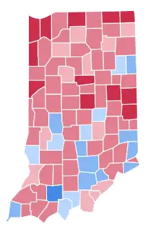 | Tippecanoe | 6,581 | 59.83% | 4,031 | 36.65% | 261 | 2.37% | 86 | 0.78% | 41 | 0.37% | 2,550 | 23.18% | 11,000 |