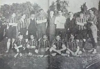 At photo a formation of Fenerbahçe in 1907. Founding president of the club Ziya Songülen, standing on the left is the 4th person