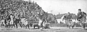 - ↑ "Fine Weather and Banner Game Attract Big Crowd: Over 20,000 Persons Witness Struggle on Ferry Field—Rival Cheer Leaders Get Much Noise From Their Respective Cohorts—Pretty Girls Out in Force—Mob is Well Handled". Detroit Free Press. November 20, 1910. p. 23.