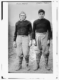 The 1911 Carlisle Indians football team represented the Carlisle Indian Industrial School as an independent during the 1911 college football season. Led by tenth-year head coach Pop Warner, the Indians compiled a record of 11–1 and outscored opponents 298 to 49. The season included one of the greatest upsets in college football history. Against Harvard, Jim Thorpe scored all of the Indians' points in a shocking upset over the period powerhouse, 18–15. The only loss for Carlisle came at the hands of Syracuse the following week, 12–11.[1] Walter Camp selected Thorpe first-team All-American. One source claims Thorpe was "recognized as the greatest player of the year and a man whose kicking is likely to revolutionize the game."[2] College Football Hall of Fame members on the team include Thorpe, Gus Welch, and William "Lone Star" Dietz.