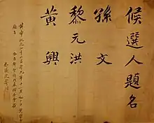 One vote was given to each of the seventeen provinces presented in the assembly.[lower-alpha 1] Five other provinces were still under Qing control.[lower-alpha 2] The protectorates in Outer Mongolia, Inner Mongolia, Qinghai and Tibet were semi-independent and did not participate the election.