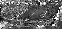 When the team left Ann Arbor on Thursday evening, a large crowd gathered at the station. Coach Yost spoke briefly, assuring the crowd that the team was "ready for anything the Buckeyes offer."[20] The day before the game, The New York Times published a story about speculators asking $15 for $2.50 seats, adding, "Columbus is preparing for the greatest influx of football enthusiasts the city has ever entertained."[21] Although the capacity of the new stadium was 63,000, temporary bleachers were erected along the sidelines and "into every nook and cranny of the big structure.[19] Reports of the crowd size ranged from 72,000 to 80,000.[16][19][22][23]