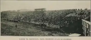 The 1922 Michigan vs. Vanderbilt football game, played October 14, 1922, was a college football game between the Michigan Wolverines and Vanderbilt Commodores. The game ended as a scoreless tie. It was the inaugural game at Dudley Field (now known as Vanderbilt Stadium), the first dedicated football stadium in the South.