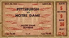 - ↑ "Play-By-Play Account of Pitt Victory". The South Bend Tribune. South Bend, Indiana. October 29, 1933. p. Spots 2. Retrieved January 29, 2022 – via Newspapers.com.
