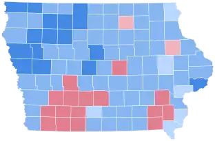 Iowa was won by incumbent President Franklin D. Roosevelt (DNew York), running with Vice President John Nance Garner, with 54.41% of the popular vote, against Governor Alf Landon (RKansas), running with Frank Knox, with 42.70% of the popular vote.[3][4] As of the 2020 presidential election, this is the last occasion when Sioux County, Lyon County and O'Brien County have voted for a Democratic presidential candidate.[5][6] Iowa would not vote Democratic in a presidential election again until 1948.