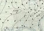 In Florida, damage was minor, amounting to uprooted trees, broken windows, moderate crop damage, and downed power lines. A few flimsy structures and small watercraft also sustained damage. Along the Florida Panhandle, the storm's winds impacted power, telephone, and telegraph lines, and inflicted $2,000 worth of damage to a dock warehouse. A man in Cedar Key, Florida, drowned after rough surf overturned his rowboat,[5] and at least two other people suffered minor storm-related injuries.[8] Torrential rain fell in Alabama as a result of the storm's slow forward movement, leading to severe flooding. Further inland, the storm spawned a tornado in North Carolina which caused one death. As the depression continued heading inland, it dropped heavy precipitation throughout the Mid-Atlantic States, exceeding 14 in (360 mm) in Tuckerton, New Jersey,[5] and 18 in (460 mm) in Manahawkin, New Jersey.[9]