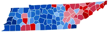 For over a century after the Civil War, Tennessee was divided according to political loyalties established in that war. Unionist regions covering almost all of East Tennessee, Kentucky Pennyroyal-allied Macon County, and the five West Tennessee Highland Rim counties of Carroll, Henderson, McNairy, Hardin and Wayne[3] voted Republican – generally by landslide margins – as they saw the Democratic Party as the "war party" who had forced them into a war they did not wish to fight.[4] Contrariwise, the rest of Middle and West Tennessee who had supported and driven the state's secession was equally fiercely Democratic as it associated the Republicans with Reconstruction.[5] After the disfranchisement of the state's African-American population by a poll tax was largely complete in the 1890s,[6] the Democratic Party was certain of winning statewide elections if united,[7] although unlike the Deep South Republicans would almost always gain thirty to forty percent of the statewide vote from mountain and Highland Rim support.