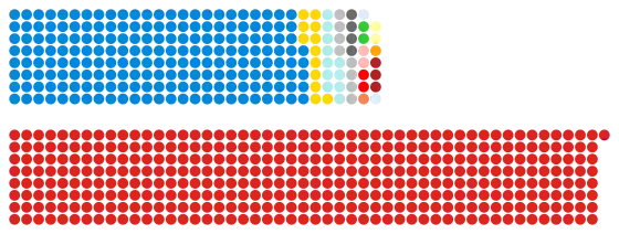 Last election 154 seats, 38.0% 386 seats, 47.8%