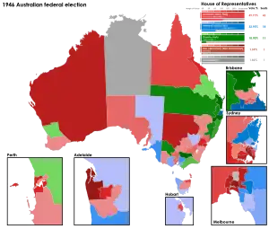1. The Northern Territory had one seat, but members for the territories did not have full voting rights until 1966 and did not count toward government formation.