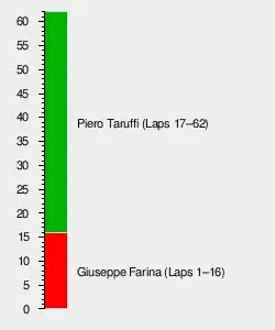 • Farina (33 laps) took over from Simon (18) after Farina retired from the race.