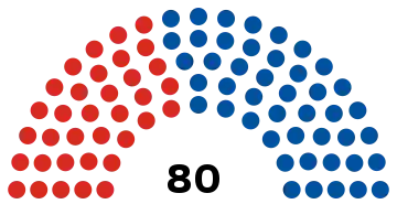 Last election 46 seats, 47.6% 34 seats, 43.4%