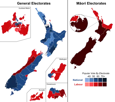 The 1963 election saw the governing National Party retain office by a ten-seat margin. It had previously held office by a twelve-seat margin. National won a total of forty-five seats, while the Labour Party won thirty-five. In the popular vote, National won 47.1% to Labour's 43.7%. The Social Credit Party won 7.9% of the vote, but no seats. Four of their candidates also missed the nomination deadline. One political analyst, Professor Robert Chapman, called it "the no change election".[3][5]