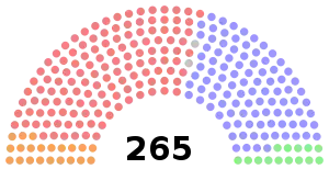 | Total seats: | 22 | 17 | 17 | 14 | 85 | 75 | 10 | 12 | 4 | 7 | 1 | 1 | 265 | ||