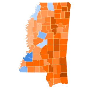 By August, it was widely accepted that Wallace would carry Mississippi by a large margin,[15] as apart from a small number of wealthy urban communities he had captured a virtual monopoly of the state's white electorate. Wallace was the only candidate to campaign in the state;[13] Nixon did not campaign in the state at all, and won more than twenty percent of the vote in just five of the state's 82 counties.[16]
