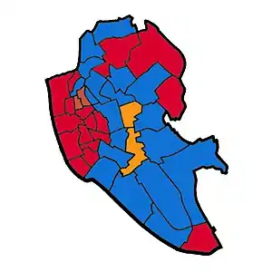 Map of Liverpool showing wards won (first placed party)[1]