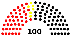 | Party | Vote % | Vote % ± | Seats | Seats ± | ||||||||||