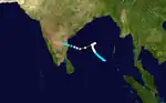 This storm was formed on 7 September, possibly due to a storm's remnant from the West Pacific Ocean. it gradually intensified to a Very Severe Cyclonic Storm by 9 September. The storm made landfall at Ichhapuram in Andhra Pradesh on 10 September. Due to the storm, 100 people and 8000 cattle were perished. Puri in Odisha recorded gust winds up to 185 km/h (115 mph). Heavy damages to agricultural crops took place at Odisha and Andhra Pradesh. Nearly 2 lakh people were affected by the storm. Ganjam District in Odisha was the worst affected by the storm. It was one of the most intense cyclones to hit India in the month of September.[3]