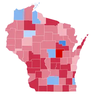 McGovern won seven counties (out of 131 county-equivalents including three in Alaska that he won nationally)[3] receiving as usual his highest vote in almost wholly Native American Menominee County where he won 62.3 percent of the vote. McGovern and Shriver also achieved clear majorities in Milwaukee, Dane, Ashland, Douglas and Portage Counties, and Rusk County by 1.1 points. Nixon won Manitowoc County by one hundred and ten votes, achieved pluralities in Pepin, Chippewa and Forest Counties, and won majorities in the remaining seventy-eight – the largest being in Waupaca County where Nixon won by forty-two percentage points.