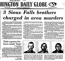 - ↑ "Nab Trio For Slaying Boys: Brothers Are Charged In Iowa Park Deaths". Cedar Rapids Gazette. Vol. 91, no. 325. Cedar Rapids, Iowa. Gazette Leased Wires. November 30, 1973. pp. 1, 3, 8. Retrieved January 5, 2024 – via cedarrapids.advantage-preservation.com.