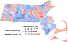 ![]() County results Dukakis: 40–50% 50–60% 60–70% Sargent: 50–60% 60–70% | ||||||||||||||||||||