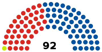 Last election 55 seats, 47.6% 32 seats, 39.6% 0 seats, 7.4%