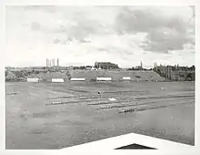 The entire event was organised by volunteers; the organising committee had no people in employment.[5] Cyril Hilliard was the secretary of the organising committee.[6] Volunteer labour erected a grandstand; all built with scaffolding. As Rowlands was a marine engineer, he designed the starting pontoon himself[4] and the construction was carried out by James Hill, a former Olympic rower who was a joiner by trade. Hill also built the start and finish towers.[7] A company donated 13 kit houses, and these were used as offices.[5] Catering for the competitors was done by the New Zealand Army. It is estimated that in total, close to 100,000 spectators attended the four days of racing.[4] Keller called it afterwards "the greatest regatta in living memory".[4] Former British rower Dickie Burnell, who worked at Karapiro as a correspondent for The Times, labelled the event "the greatest show on water".[5]