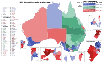 The 1980 Australian federal election was held in Australia on 18 October 1980. All 125 seats in the House of Representatives and 34 of the 64 seats in the Senate were up for election. The incumbent Liberal–NCP coalition government, led by Prime Minister Malcolm Fraser, was elected to a third term with a much reduced majority, defeating the opposition Labor Party led by Bill Hayden. This was the last federal election victory for the Coalition until the 1996 election.