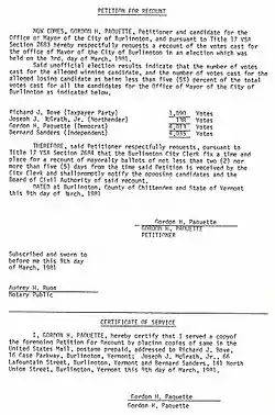- ↑ Abbey, Alan (March 10, 1981). "Board to Conduct Mayoral Recount Friday". The Burlington Free Press. p. 11. Archived from the original on December 3, 2020 – via Newspapers.com.